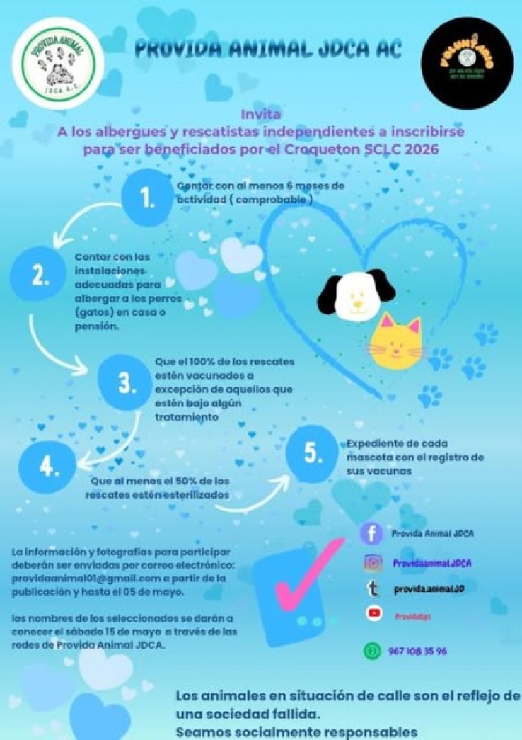 La también activista informó que ya se encuentra abierta la convocatoria para refugios y rescatistas independientes, invitando a todas y todos a sumarse de manera formal.